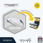 Lens : Polycarbonate - Monobloc | Curved | Frame : Temples - Polycarbonate | Lateral protection | Weight : 37 g   Brand : Delta Plus Kind of spectacles : Overspecs Lens matérial : Polycarbonate Lens treatment : Anti-scratch...